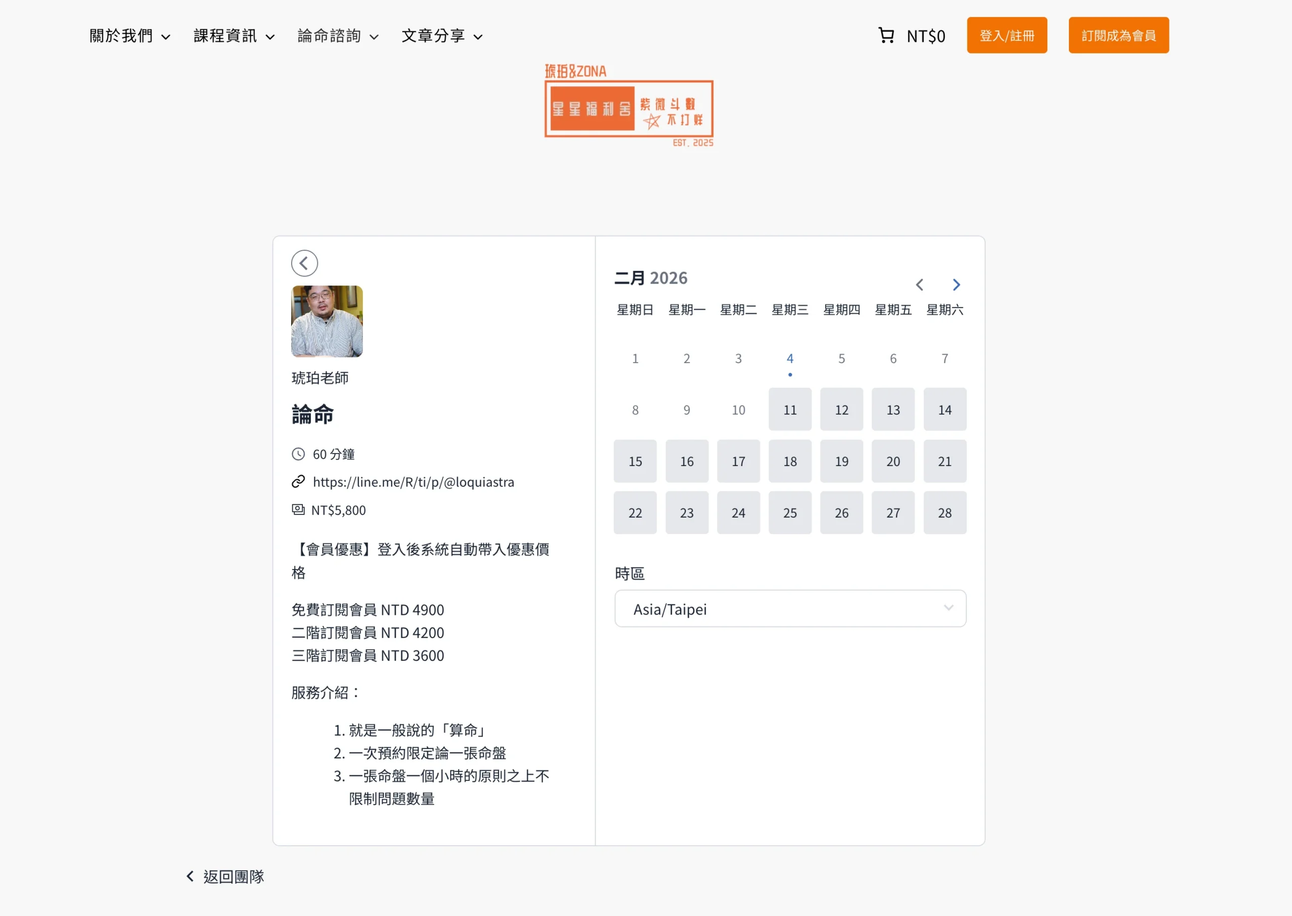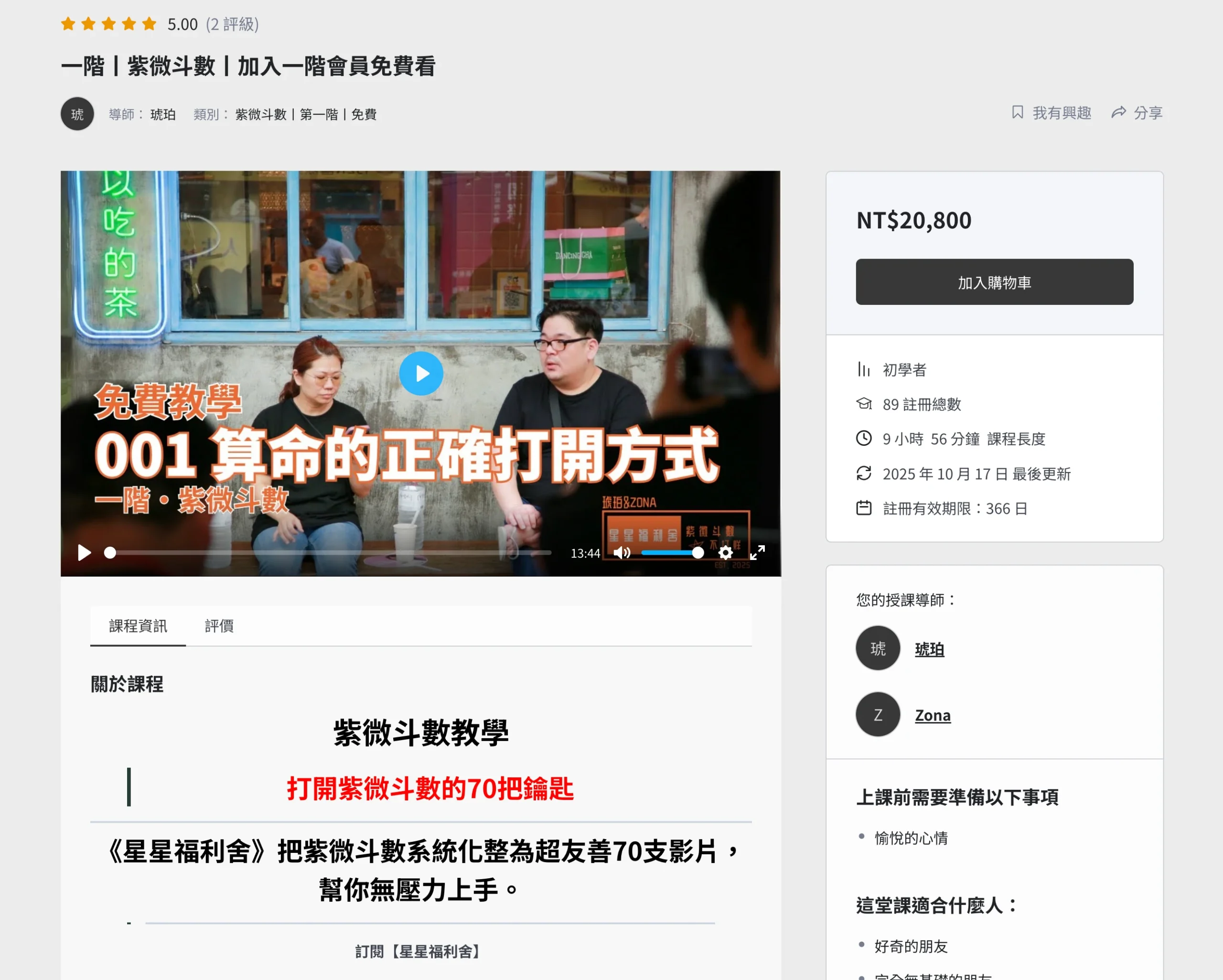 品牌提供紫微斗數相關教學內容,並同時有論命諮詢服務需求。