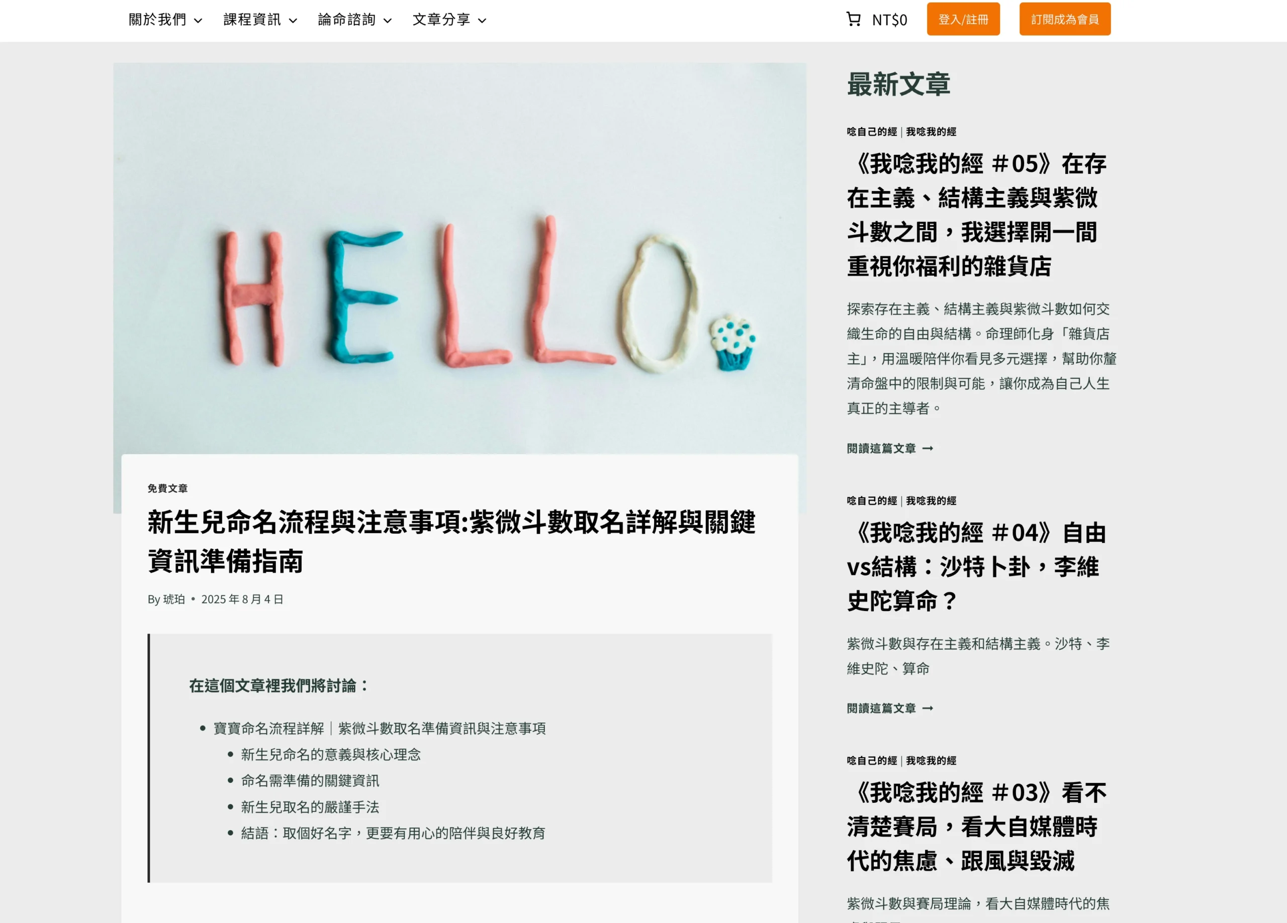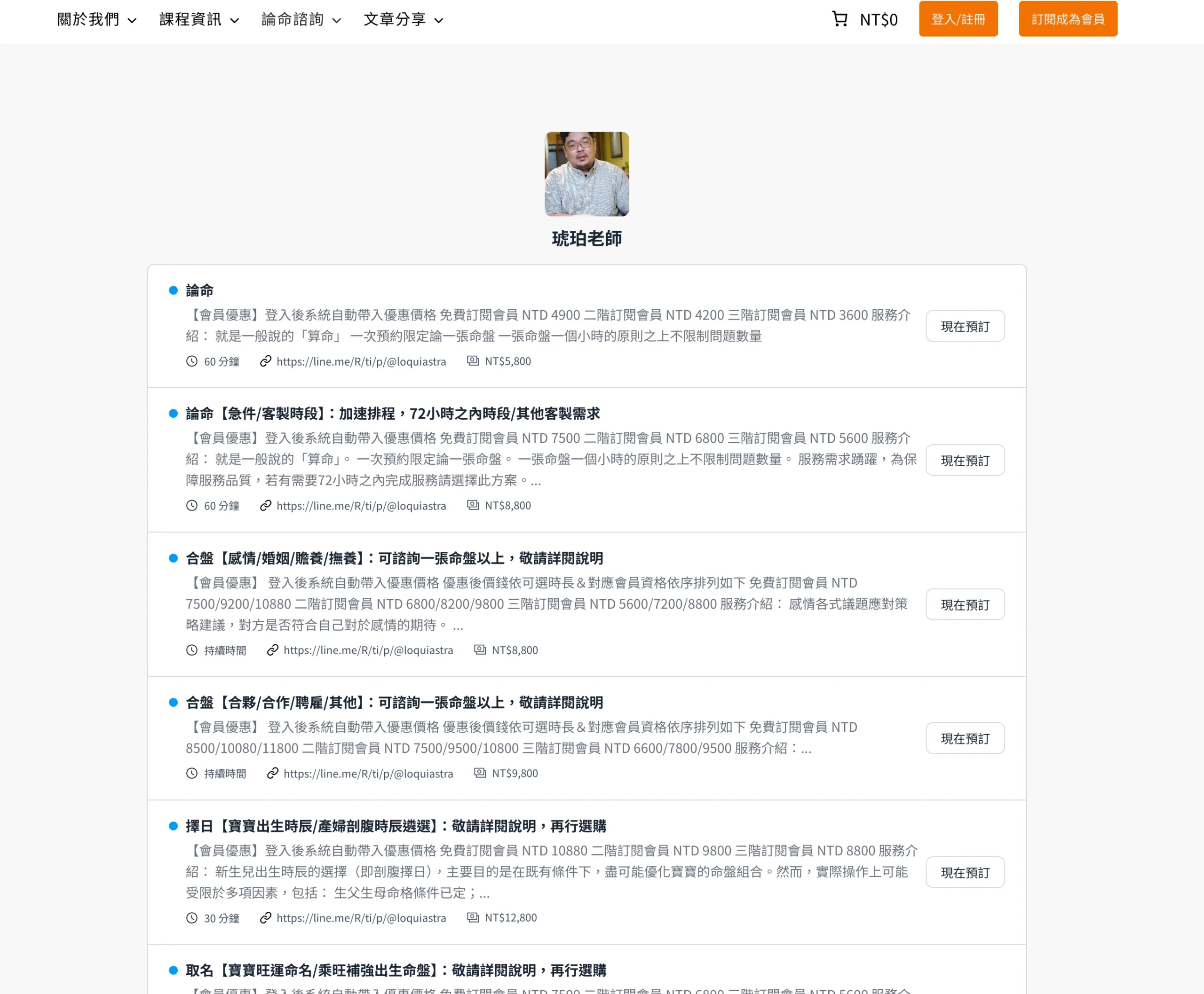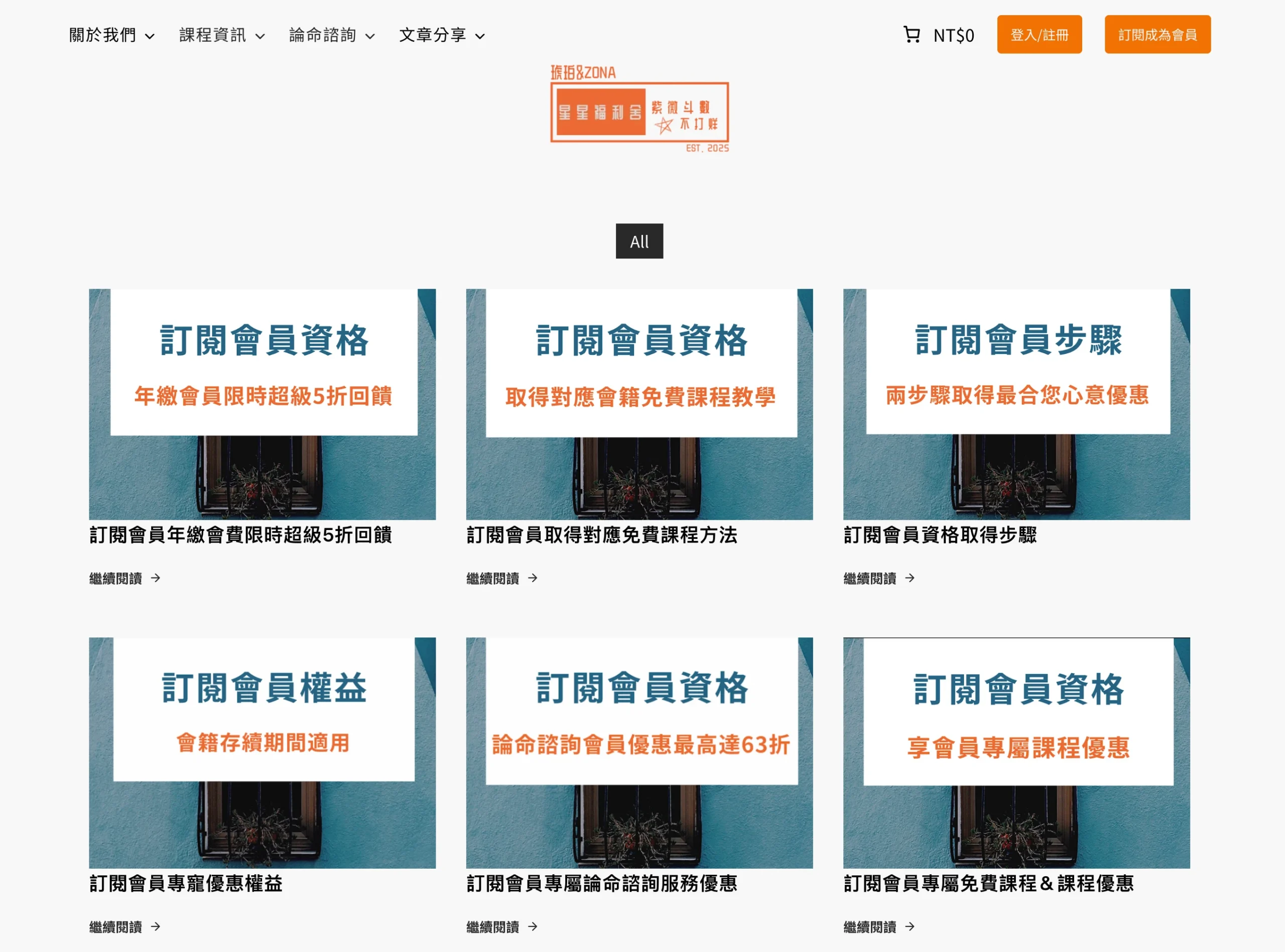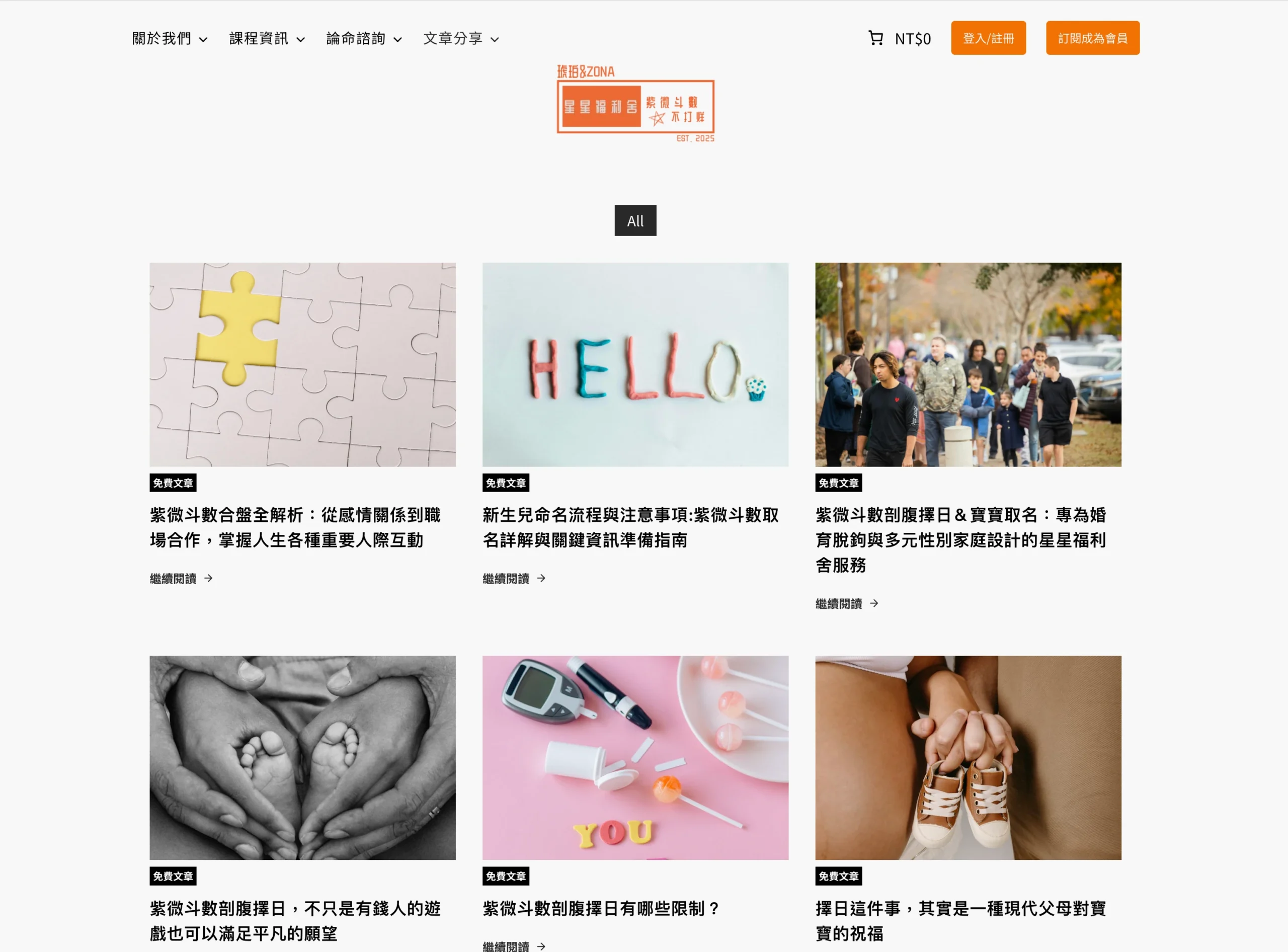 一站整合:課程 × 論命諮詢 × 優惠佈告 × 內容文章