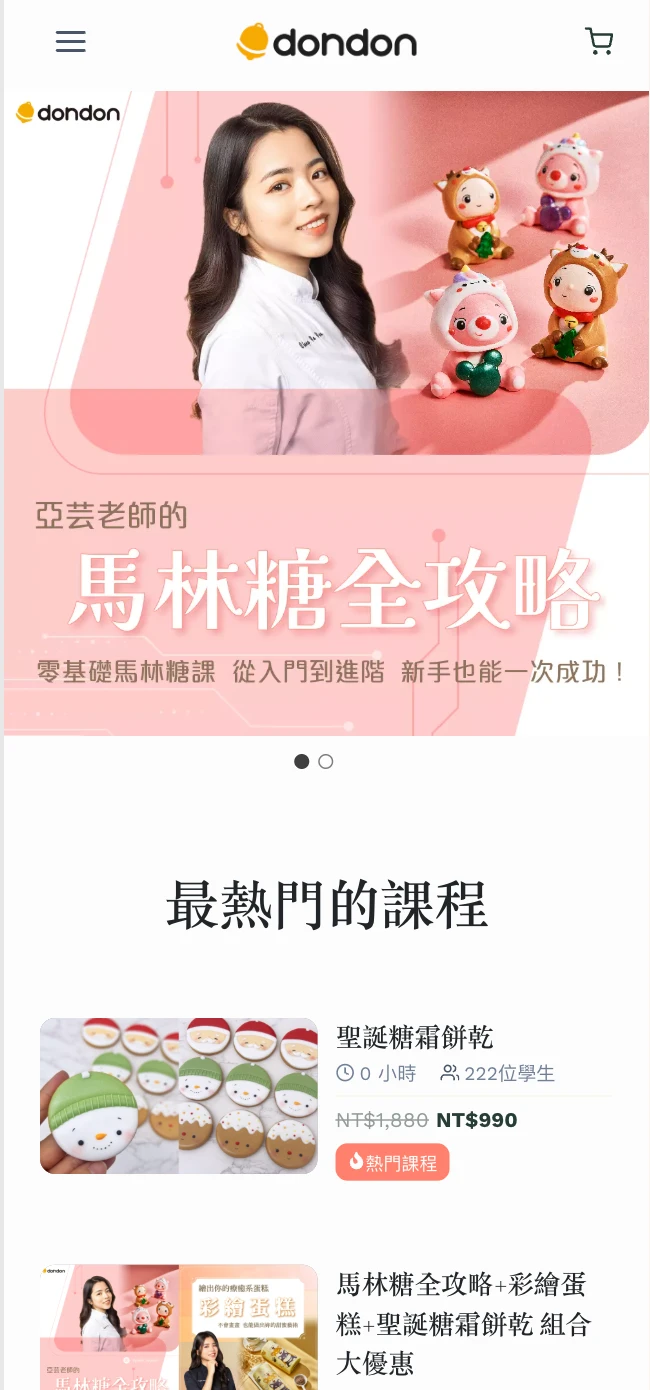 首頁直接呈現「最熱門的課程」與價格/折扣資訊,讓使用者不用再多點兩三層找推薦課程。