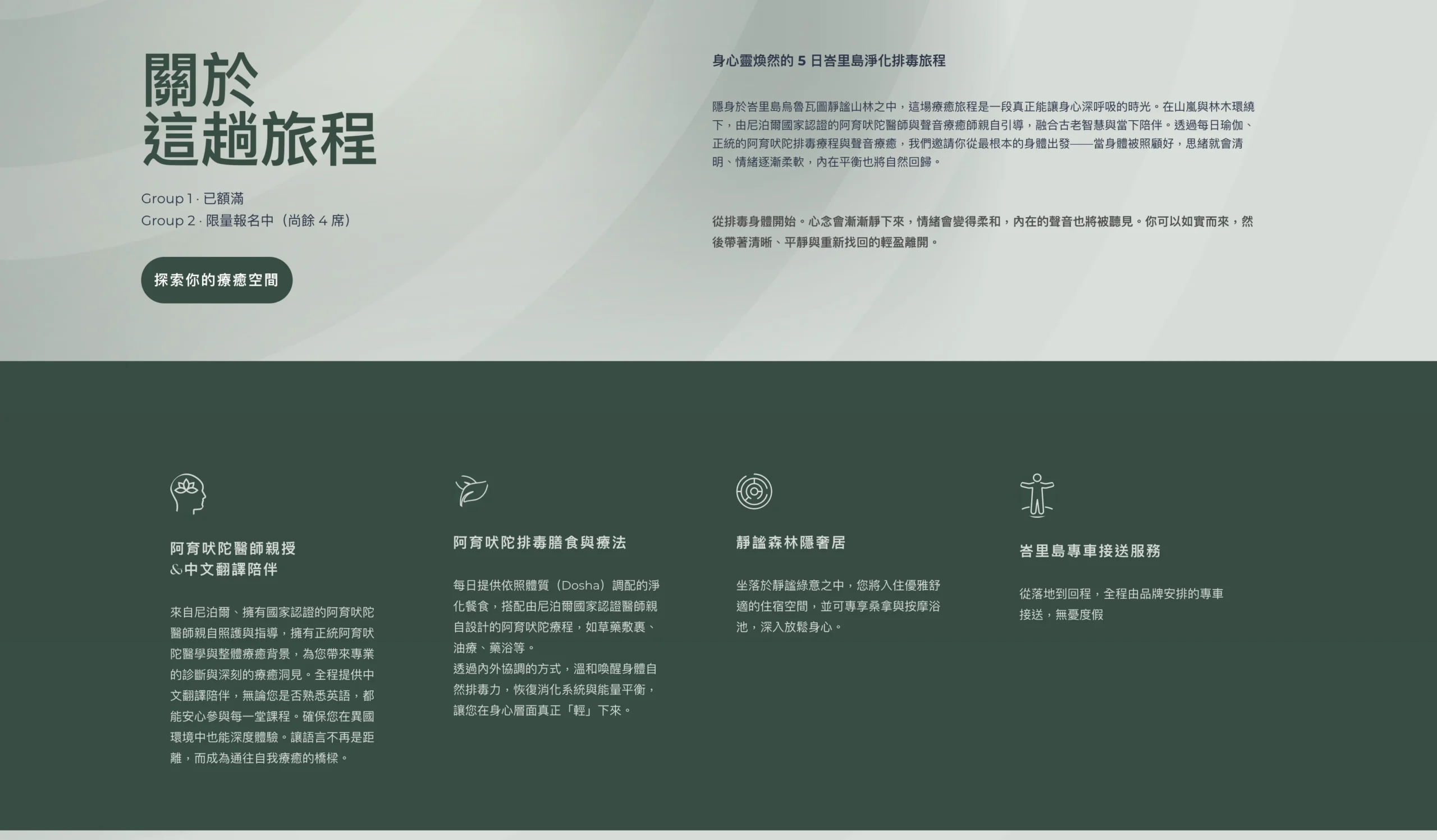 高端療癒旅修平台|旅程、方案、名額、付款一次到位