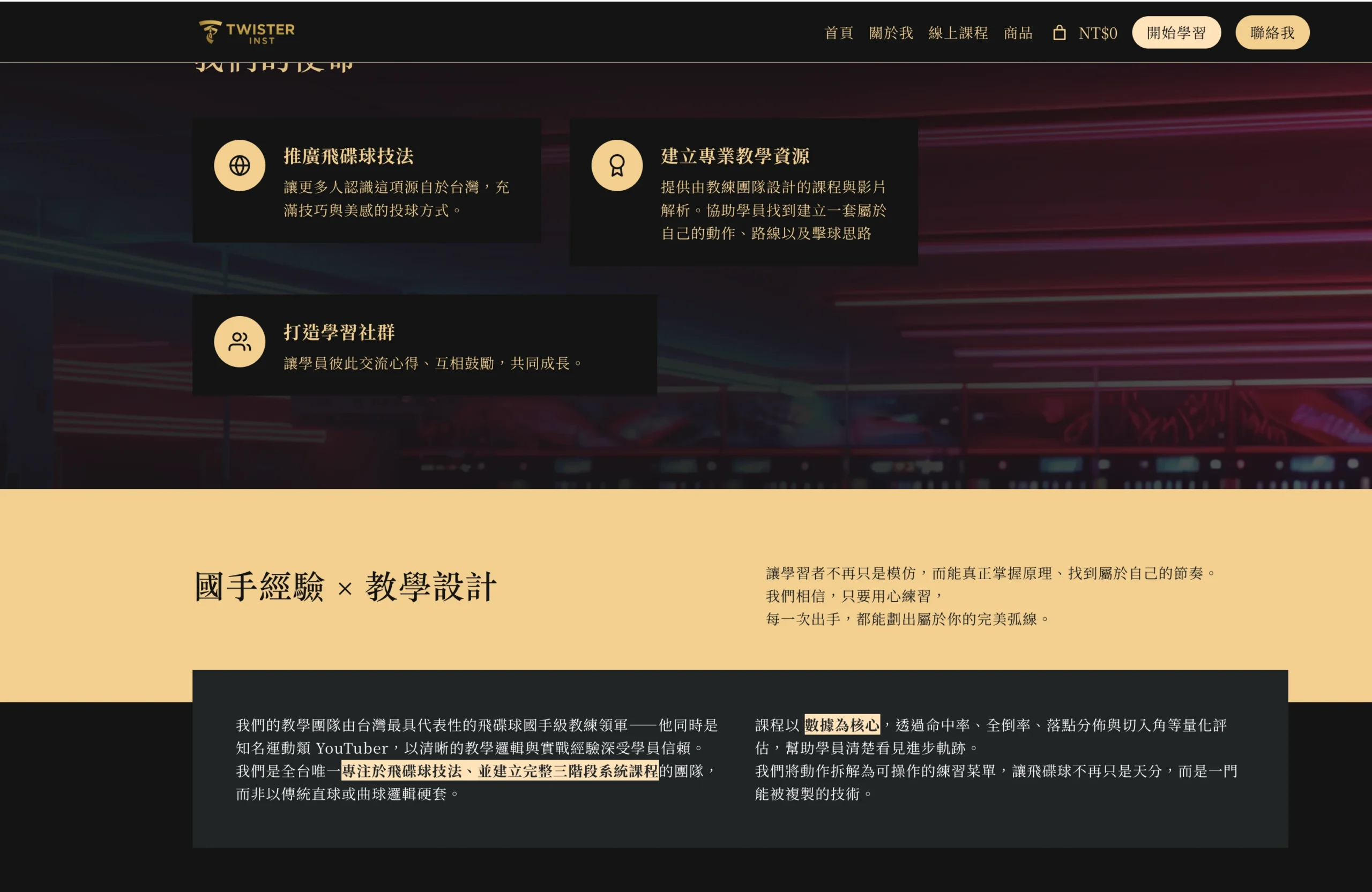核心目標是轉換,所以大量使用卡片與明確 CTA,把課程、周邊、1v1 方案在同一頁就能被理解與選購。