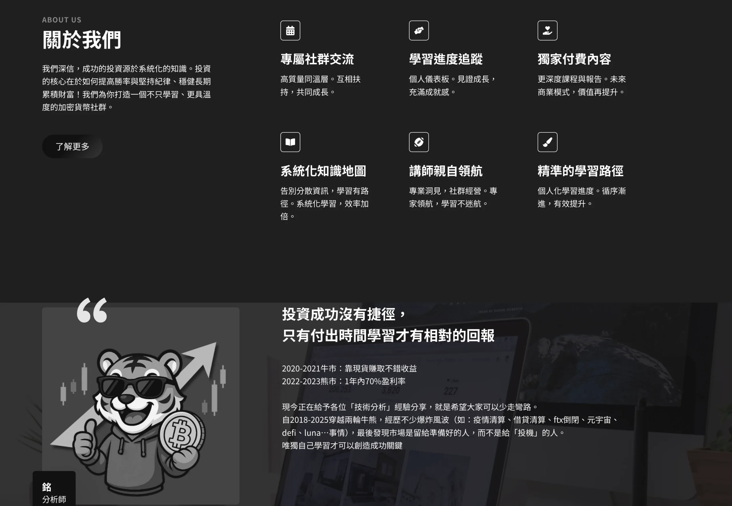 平台定位在「加密貨幣學習新起點」,主打由專業分析師/講師提供內容。